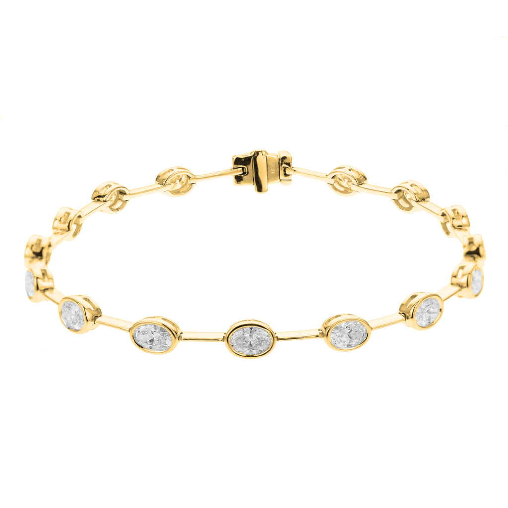 18kt yellow gold diamond bracelet with 16 bezel set oval diamonds separated by a bar.  2.60cttw, G-H color, SI clarity.
